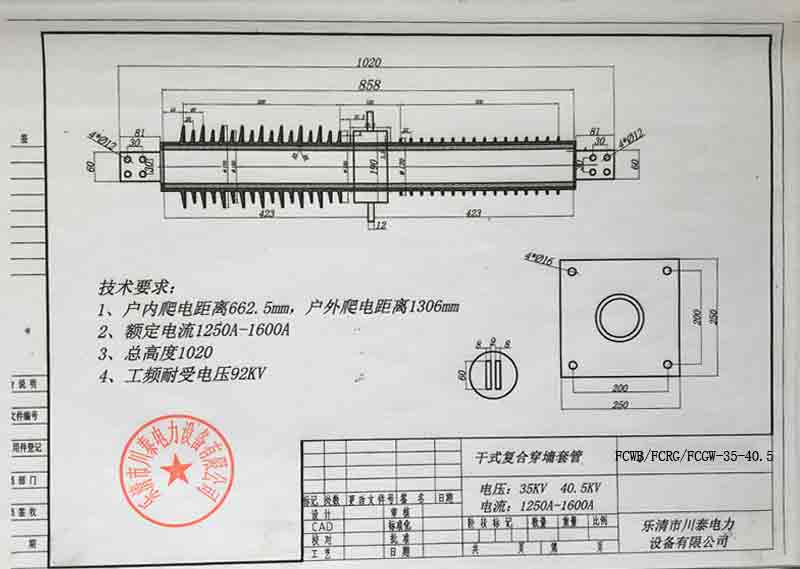FCWB/FCRG/FCGW35-40.5KV(400-1600A)复合式穿墙套管