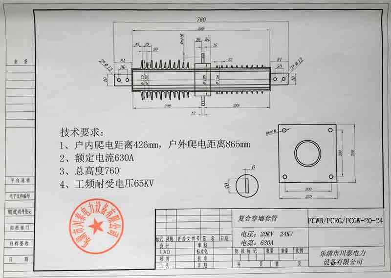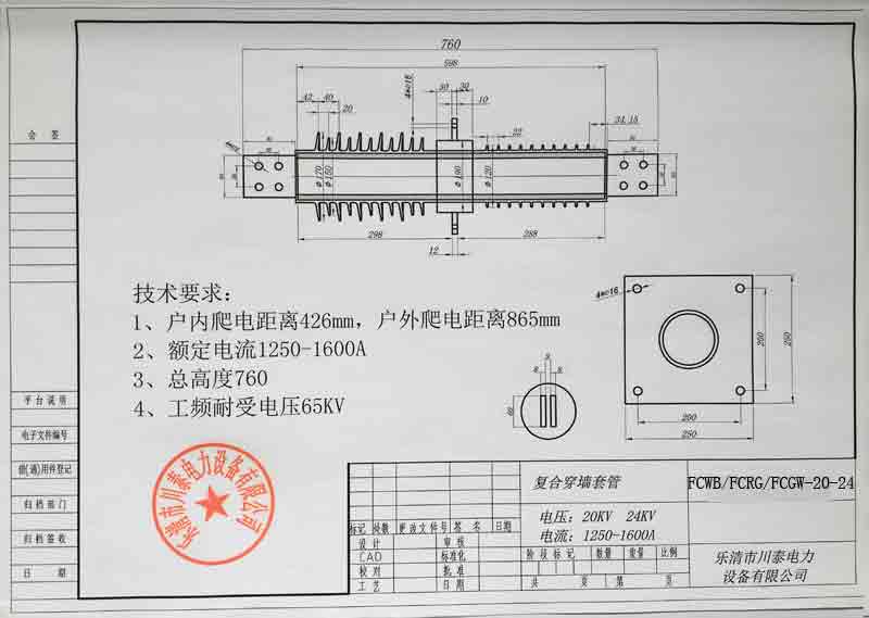 FCWB/FCRG/FCGW20-24KV(400-1600A)复合式穿墙套管