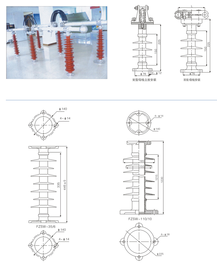复合支柱绝缘子抗弯曲性能好,防污能力强,抗冲击能力强,防震和防脆断性能好,体积小,重量轻,安装方便,可免维护,不需人工清扫,与支柱瓷具有可互换性。