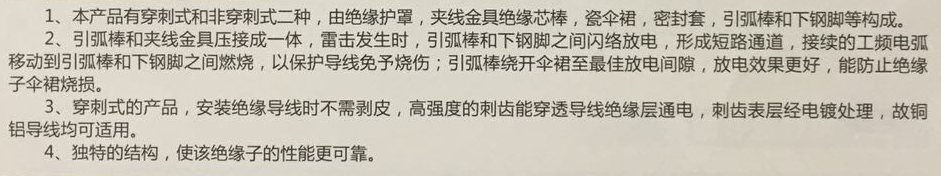 本产品的上下金具由高强度的绝缘芯棒连接,外绝缘为瓷伞裙,如此独特结构,综合了复合与瓷绝缘子的优点,也就是弥补了二者的缺点,是一种较为完美的防雷支柱绝缘子,其功能与FEG型防雷支柱绝缘子完全相同。